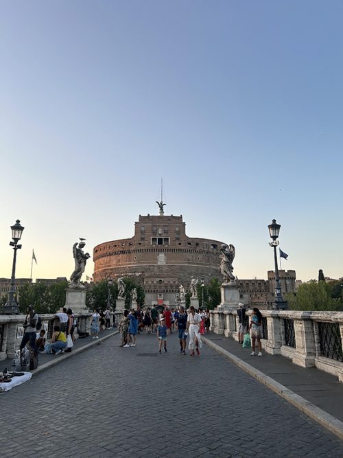 ホテルに移動してチェックインした頃にはもう夕方になっていました。「バチカン市国」の近くのホテルだったので、ホテルの周辺を軽くお散歩しました。歩いていると「サンタンジェロ城」が現れたので橋から外観だけ眺めました。