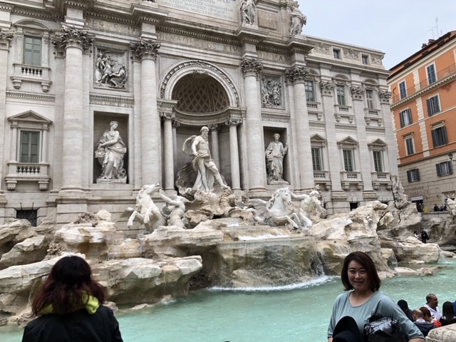 5日目は朝食を済ませ、スペイン広場、トレビの泉へ徒歩で向かいました。どちらもすごい人でした。スペイン広場の階段は座ることが禁止されているようで、座るとパトロールしている警察官に怒られます。トレビの泉も混んでいましたが、なんとかコイン投げができました!この後、ホテルに戻りチェックアウトをし、テルミニ駅からフィレンツェへ移動しました。
