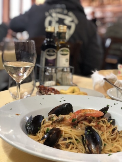 この後、バスツアーでピサへ行きました。フィレンツェからバスで2時間ほどで到着。ピサの斜塔は実際に見ると、かなりの傾きで驚きでした!スマホと、360度カメラしか持っていなくて、写真が補正されて残念。中も入りましたが、中は空洞で何もなく、螺旋階段を登っていく時、傾いていて変な感じでしたね。上から見た景色は綺麗でした。フィレンツェに戻り、夜はホテル近くリストランテで食事をしました。