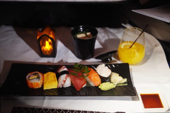 世界一と言われているカタール航空のビジネスクラスに乗りたい!と切望していたんです。そして今回その夢が叶いました!楽しみにしていたQ suite!機内食はアラカルトで自分の好きなものを好きな時に好きなだけ注文できます。私は夜はお寿司、朝はオムレツを。食事は豪華で美味しかったです。もちろんデザートもいただきましたよ。CAさんがベッドメイクもして下さり、飛行機の中ですがダブルベッドのような状態に!これにも感動でした!