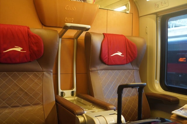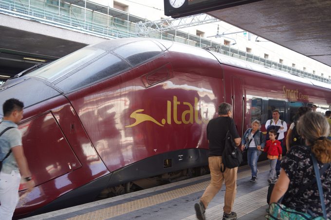ローマから朝8時前のイタロに乗って約1時間半。フィレンツェへ移動しました。真っ赤なボディの1等車。私たちは4人まで座れる個室を取りました。1等車はラウンジも使えるので、よくあるヨーロッパの電車の遅延時なども困りません。チケットは事前に早く買えば安いので1等車をオススメします。