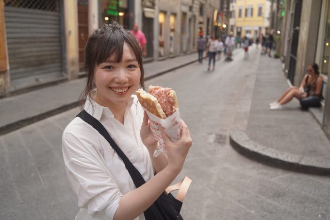 フィレンツェに着いて、まず中央市場へ!大人気パニーノのお店「ネルボーネ」へ!名物のランプレドット(牛もつの煮込み)のパニーノをいただきました!さすがの味!美味しかったです。続いてフィレンツェ郊外のTHE MALLへ行きショッピングを楽しみました。夕飯は「ダ リーノ」というお店でキアニーナ牛のビステッカをいただきました。美味しかったです!