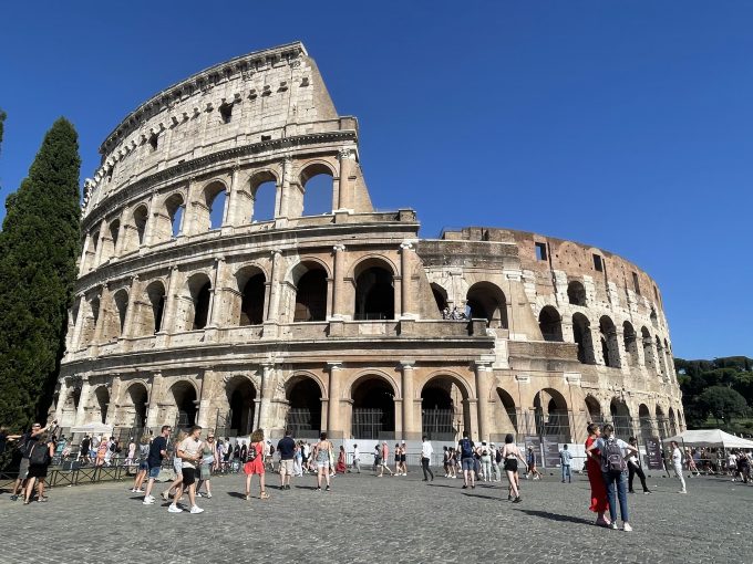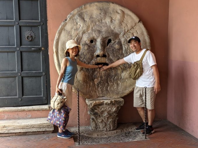 ランチの後「真実の口」へ。意外と混んでいなくて、すんなり撮影できました。お土産屋さんもあってマグネットと置物を購入しました!この後、徒歩で「コロッセオ」へ向かいました。先に「フォロ・ロマーノ」を通り過ぎて、抜けたその先にコロッセオが現れました。コロッセオはその大きさに圧倒され、歴史を調べながら入ったので、いろんな思いを感じながら見学することができました。