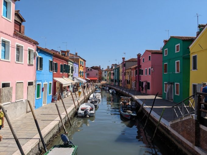 2日目は、朝から水上バス“ヴァポレット”に乗って、「ムラーノ島」と「ブラーノ島」へ。日曜日の早朝だったからかムラーノ島は静かな印象で、少し散策しただけでしたが、次に向かったブルーノ島は、お家がひとつひとつカラフルでとても可愛い島でした。どこを切り取っても写真映えする街並みで、ずっと写真を撮っていました。飲食店、お土産屋さんも豊富で、楽しく散策できました。もっとブラーノ島に居たかったです。
