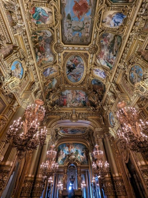 パリ市内に戻って「オペラ・ガルニエ」を見学。正直ベルサイユ宮殿より感動したぐらい、絢爛豪華な内装で素晴らしかったです!劇場内の内装はもちろんゴージャスで美しいのですが、特にグラン・フォワイエと呼ばれる休憩時間を過ごすお部屋がヴェルサイユ宮殿以上にきらびやかで感動しました。