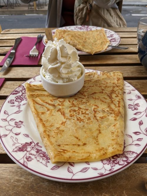 旅の最終日。午後の飛行機の出発前に、エッフェル塔に登ろうと思っていたのですが、その日は前日のパリ祭の影響で14時からのオープンで時間的に断念、とても残念でした(泣)。フライト前にお土産などのお買い物をして、再び昨夜のガレット屋さん「La Creperie de Josselin」へ。今度はスイーツ系の甘いガレットを注文しました。甘さが染み渡っていてとても美味しく、大満足でした。早めのランチの後、最後のパリの街を楽しんでから空港へ向かいました。