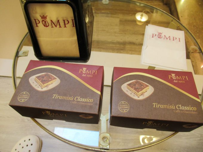 その後、ティラミスの有名店「ポンピ(POMPI)」で伝統的なティラミスをいただきました。ボリューム満点なのに1箱€4と安い!甘いものがあまり好きではない夫も「甘すぎなくて美味しい!」とペロリと食べていました。本当に美味しくて、ローマの最後の素敵な思い出になりました。