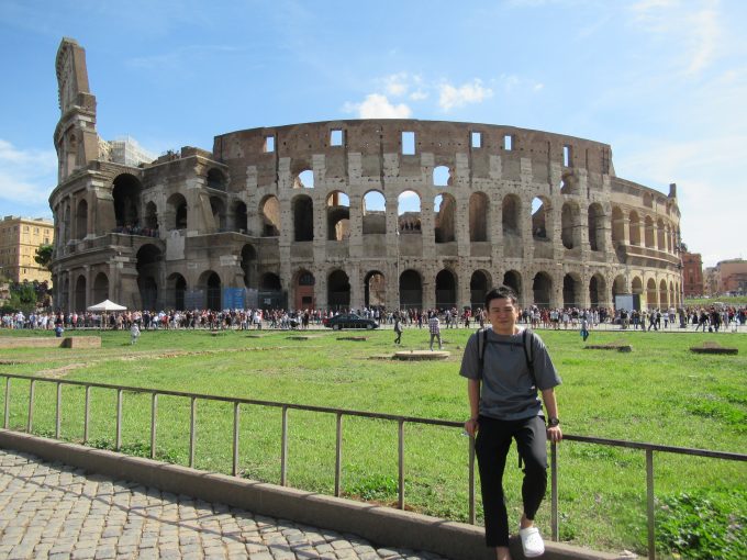 この後はいよいよコロッセオです!雲一つない青い空と、鮮やかな緑の芝生の中に映えるコロッセオは本当に素晴らしかったです。テレビや雑誌で見ていた世界遺産コロッセオが目の前に・・・!見上げるほどの大きさですごい存在感。本当にカッコいい!内部の造りにも圧倒され、こんな建築物を2000年程前に建てた技術力のすごさに心から感動しました。