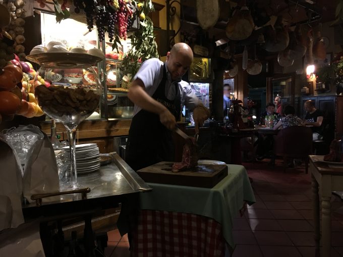 ディナーは、フィレンツェ名物のビステッカを食べに「ペルセウス(Perseus)」へ!目の前で焼きたてのお肉を切り分けてくれました。真っ赤なレアなお肉に味付けはシンプルに塩コショウのみ。外側はしっかり焼き色がついていて香ばしく内側はレア!肉の味が凝縮されてとっても美味しかったです。すごいボリュームでしたが、全部食べきれちゃいました(笑)!