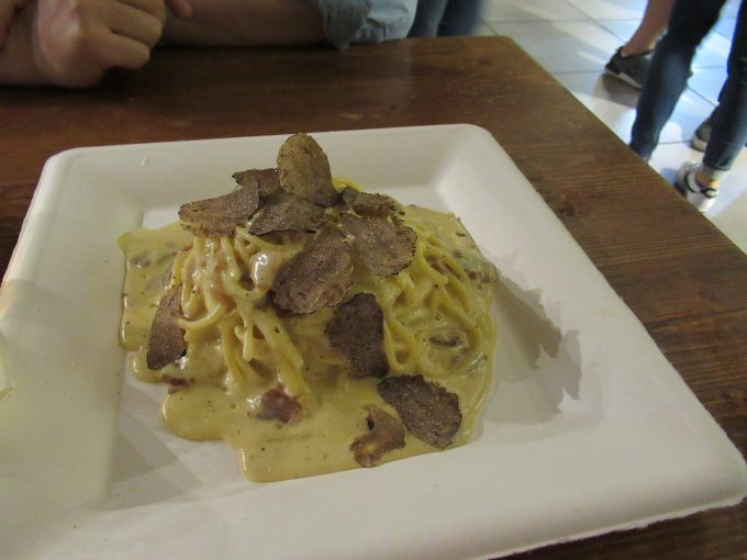 夕飯は中央市場(Mercato Centrale)へ。活気がありたくさんの人で賑わっていてその雰囲気だけでも楽しかったです。トリュフの専門店で生パスタのトリュフカルボナーラと、窯でピッツァを焼いているお店でマルゲリータを注文。美味しくいただきました!他にも美味しそうなお店が並んでおり、見ているだけでワクワクしました。大きなピザが€8だったり、他にもビールなどいろいろ安くて、ついつい食べ過ぎ、飲み過ぎてしまいました。もう少しお腹に余裕があれば、もっと食べたかったです(笑)!