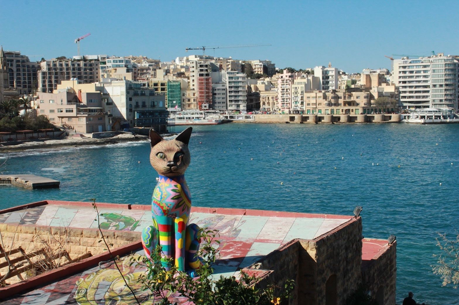 猫が集まる公園があると言うので、せっかくなので行っていました!ディプロマットホテルから、セントジュリアン地区のほうへ海沿いを歩いていくと猫のオブジェが出てきます。