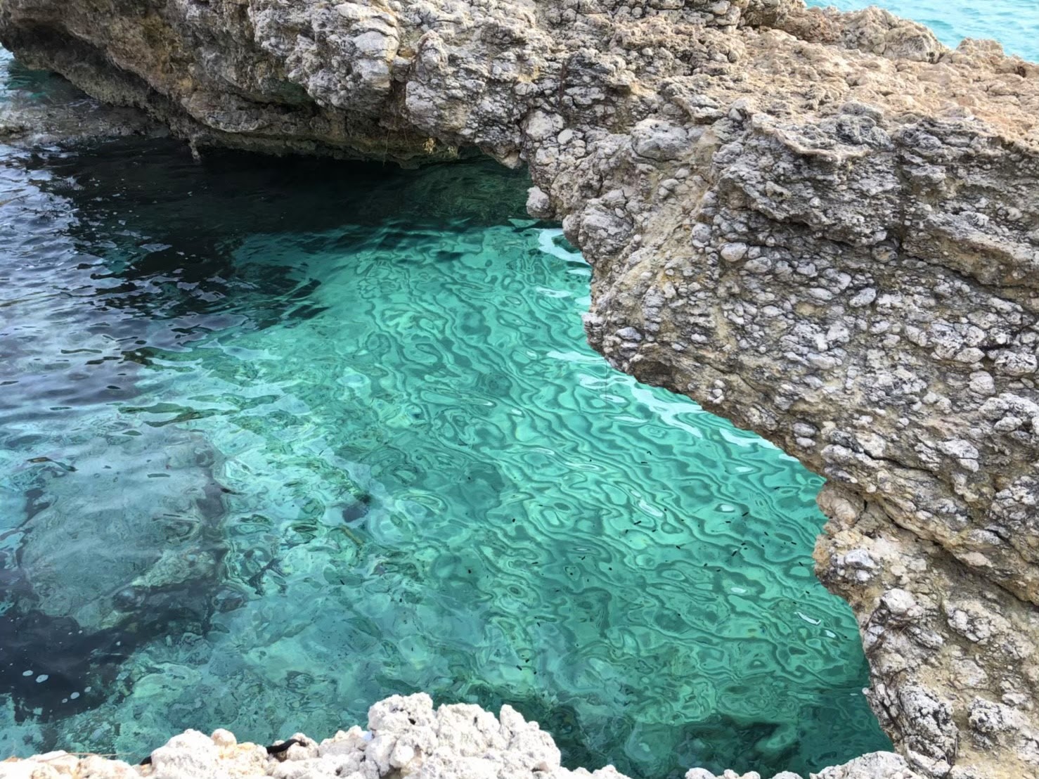 お店はなくとも、なんといっても透明度の高いクリスタルブルーの海があるのがコミノ島!