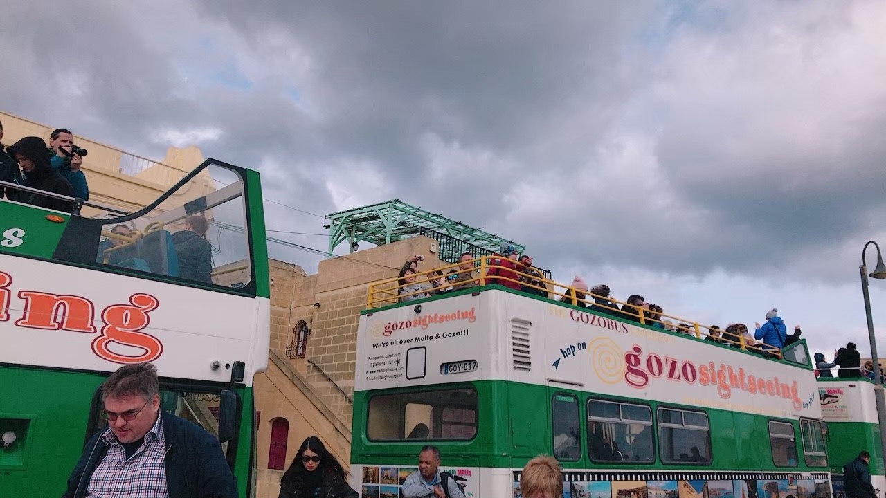ゴゾ島に到着すると観光バスに乗ってゴゾ島の中心地、ヴィクトリアを目指します。二階建てバスで、オープントップバスです。少し寒いですが二階に乗るのがおすすめ!