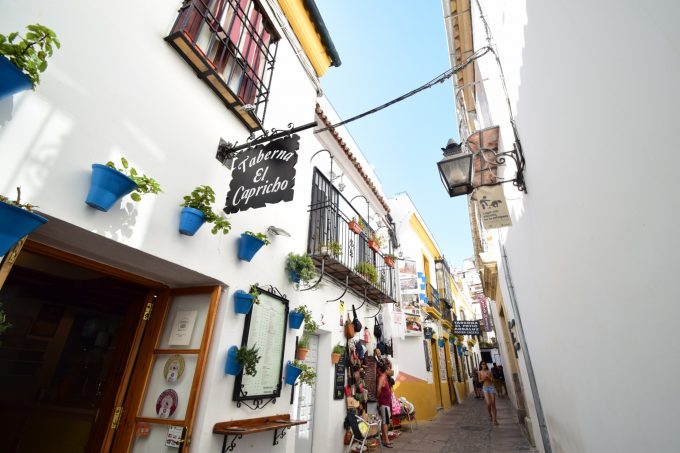 コルドバのユダヤ人街のお店通り、パティオが綺麗