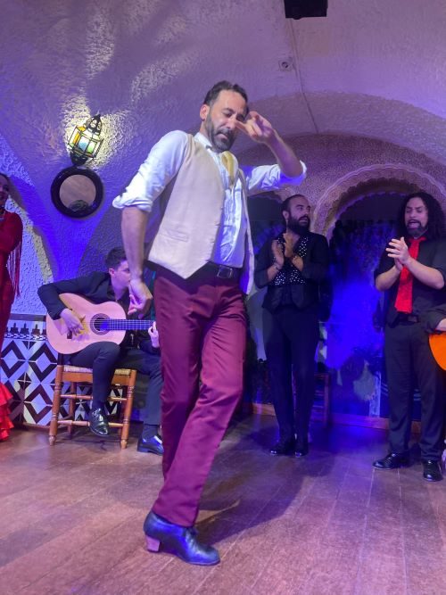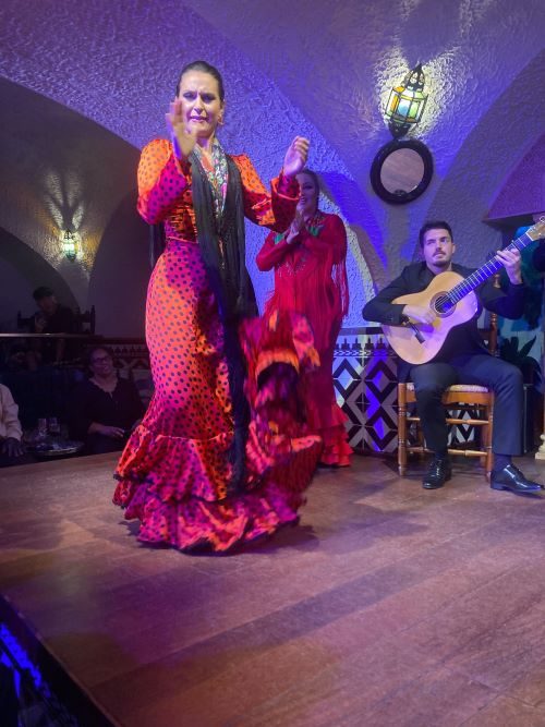 夜は「タブラオ」というお店でディナーとフラメンコショーを鑑賞しました。ラッキーなことに最前列で鑑賞することができました!少人数制で2〜20人の小さな会場というのが、お店のポリシーということで、どの席でも臨場感があったと思います。振動がこちらに伝わるくらい迫力がありました。こちらでショーの前にいただいたカタルーニャ料理が一番印象に残っています。ガイドさんに、カタルーニャ地方のパエリアがおすすめだと聞きいただきましたが、伝統的なパスタ入りのパエリアは、本当に美味しかったです!