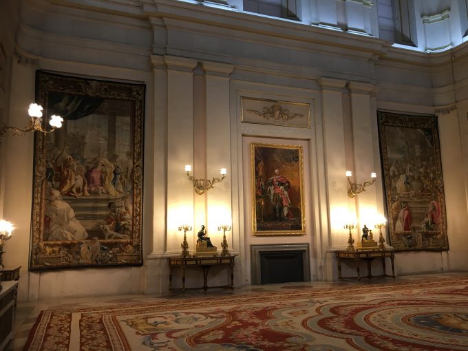 最終日、本当は散策だけして帰る予定だったのですが、「スペイン王宮」を見られてなかったので、急遽現地でツアーを探し、王宮ツアーに。通常開館前の9時から中に入れるということで、2時間王宮を散策しました。こちらは現在も使われている王宮ですが、とにかく調度品から何から目を奪われるばかりでした。 王宮は、今回の旅で妻が最も印象に残った場所だと言っています。それからホテルに戻ってランチ。その後オペラ駅から空港までタクシーで向かい帰路につきました。