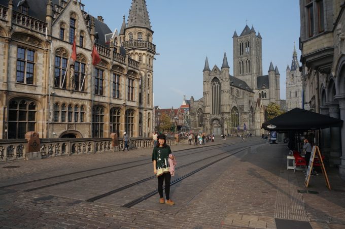 街の中心部を流れるレイエ川の両岸、コーレンレイ&グラスレイというエリアの川沿いに美しい建物が並んでいるので、そこで美しい風景を眺めながらしばらくゆっくりして過ごしました。ゲントはブルージュに比べると少し栄えた感じの街です。学生のような若い人達が多く、座っておしゃべりしたり遊んでいました。ゲントも治安が悪い感じはなく、過ごしやすい街でした。