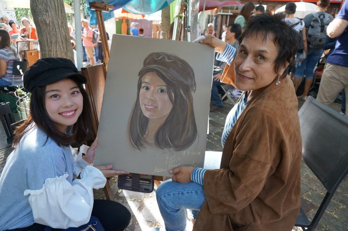 モンマルトルの丘、テルトル広場で描いてもらった似顔絵