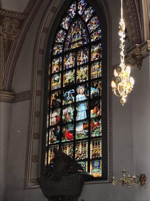 ヘルシンキ市内でふらっと入った教会にて…ステンドグラスがとっても煌びやか!
