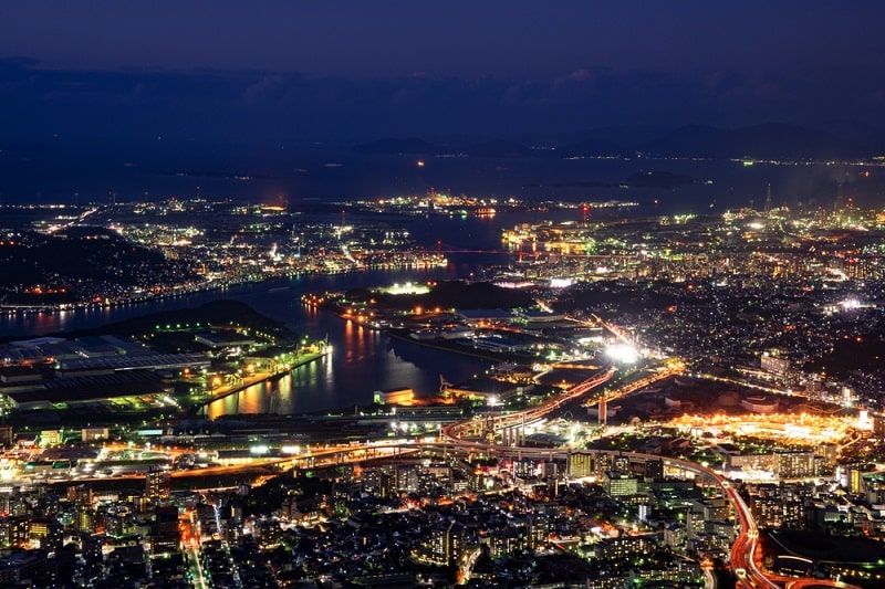 北九州市は北九州工業地帯の中核都市として古くから工業で栄えました。この工業地帯と北九州市街の作り出す夜景は、一種独特で幻想的な景色でその美しさには言葉がありません。ホテル最上階のバーラウンジからも楽しめますが、車でちょっと足をのばせば近くの皿倉山からも見ることができます。工場夜景を見るためのナイトクルーズ船などもあり、心に残る工場夜景を楽しめること間違いなしです。