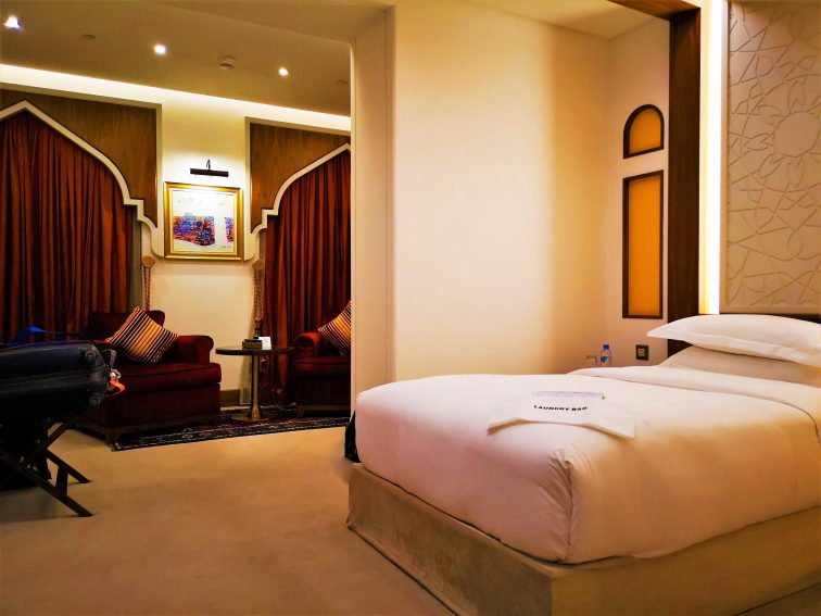 特別な客室だけではなくスタンダードな客室もゆとりのある広さ。 私の泊まった客室には、ゆっくり座れるソファーがありました。これは嬉しいですね。実際に宿泊して感じたことですが、スークの敷地内にあるおかげで、散策に疲れたら部屋に戻ってすぐ休憩できて助かりました。特に買い物しすぎて両手がいっぱい・・・そんな時もすぐに部屋に荷物を置きに戻れた事も高ポイント。
