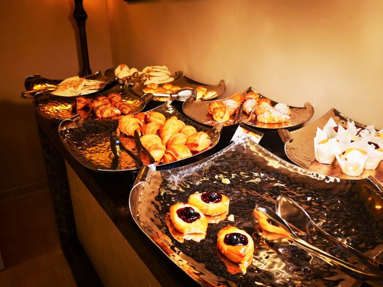 せっかくカタールにいるからと、毎食中東料理を食べているとスパイスで胃が疲れてしまうこともありますよね。「スーク・ワキーフ・ブティック・ホテルズ」ではあまり好き嫌いなく食べられるイングリッシュブレックファストがいただけます。ただしカタール国内で新鮮な豚肉を購入できる店はなく、ソーセージは鶏肉を使用。そこはきちんとイスラム教にのっとっていますし、ムスリムの方の多い土地柄、ハラール認証の調理法の料理もきちんと並んでいます。