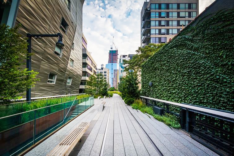 市民と観光客の憩いの場所「ハイライン」はチェルシーに位置する緑豊かな空中庭園です。かつての高架貨物鉄道の線路跡を再生していて、ミートパッキング・ディストリクトから34th ストリートまでの約2.3km続いています。ここはビルの3階ほどの高さの造りとなっており、エンパイアステートビル、ハドソン川などの景色やパブリックアートを楽しめます♪晴れた日には美しい夕日を望むスポットとしても人気があります。