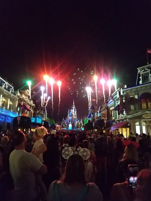 エプコットからマジックキングダム・パークへ行く途中モノレールを乗り換えるのですが、まだモノレールが来ていなくて、外を見たら船もあったので乗ってみたいと思い、急いでマジックキングダム・パーク行きの船に乗り換えました。マジックキングダム・パークに到着してからは、まずはミッキーをグリーティング。後はお買い物をしながらショーの時間まで過ごしました。時間が来て、「ハッピリー・エバー・アフター」の3回目を鑑賞。何度見ても感動できるんです、終わった後はバスでホテルに戻りました。