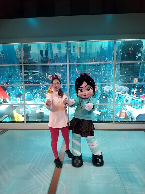 昼食後は、「ジャーニー・イントゥ・イマジネーション・ウィズ・フィグメント」へ。エプコットのオリジナルキャラクター、フィグメントに会えます。ここの音楽も気に入ったので毎日聴いています! 次に、「ディズニー&ピクサー・ショートフィルム・フェスティバル」へ。シアター型のアトラクションでオリジナルの短編アニメをやっていました。言葉が一切なくて、映像だけで楽しめるストーリーでした。次は、ジョイとグリーティング。すごい優しかったです! 同じ場所でヴァネロペともグリーティングしました、可愛かったです! そこからすぐの場所でミッキーのグリーティングも行っているのでそこにも行きました。