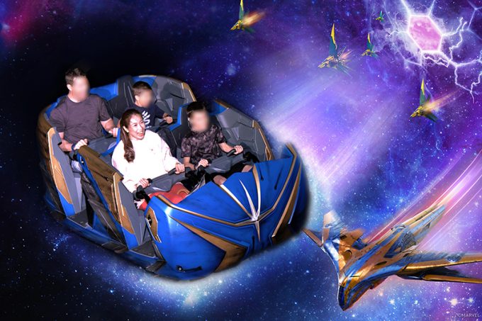 次は「ガーディアンズ・オブ・ギャラクシー:コズミック・リワインド」へ! こちらも朝の7時にアプリでエントリーし、予約がとれました。イギリス館にいるときにあなたの番ですと通知がきたので向かって乗車。これがもう言葉にならないほど楽しかったです! 映画『ガーディアンズ・オブ・ギャラクシー』を知ってる人は、まずキャラクターの登場が楽しいし、私は個人的にクリス・プラットがめっちゃイケメンで大好きなので、出てきた瞬間にカッコいい!カッコいい!と大興奮(笑)。アトラクションがはじまると、後ろ向きにガーッと発進し、その後宇宙のなかでグルグル走りまわります。映画にでてくる音楽もランダムに流れて大興奮、乗り物の爽快感に大興奮、最高に面白かったです!