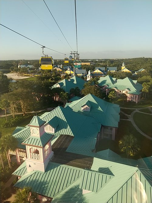 5月1日、エプコットに行きました。ホテルから出ているロープウェイ「ディズニー・スカイライナー」に乗ったのですが、これがもうすごい楽しい! 朝日が気持ちよいし、景色がよいし、パーク内のいろんなホテルを見ながら移動できるのでとってもよい気分♪ アトラクションに入れてよいほど楽しかったです!