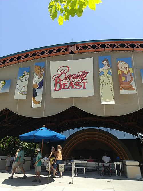 その後、「美女と野獣:ライブ・オン・ステージ」へ。映画『美女と野獣』の全編を、30分くらいで再現していました。フィナーレは豪華で、遠くから見ましたがとても臨場感がありました! 耳の聞こえない方も楽しめるよう、手話の方も横にいましたよ。ショーを見た後、近くの丘の上にデイジーとドナルドが出てきてグリーティングをしていたので写真を撮りました!