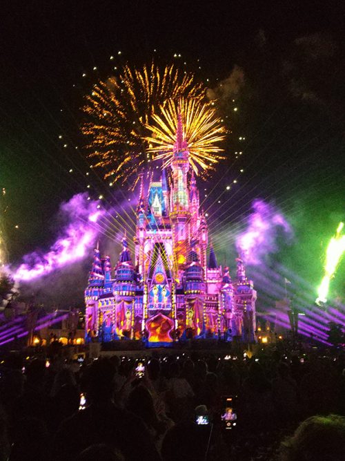 その後、夜のショーまで時間をつぶして、いよいよ「ハッピリー・エバー・アフター」へ! 動画でさんざん見てきたけど、最初の音楽が流れたとたん、感極まりました! まわりのお客さんもフォー!とか大声で盛り上げるので大興奮! 一緒に心のなかで叫びました(笑)。演出がやはりスケール外にすごかったです。永遠に続くかのような花火やその豪華さで、すっかり魅了されてしまいました。