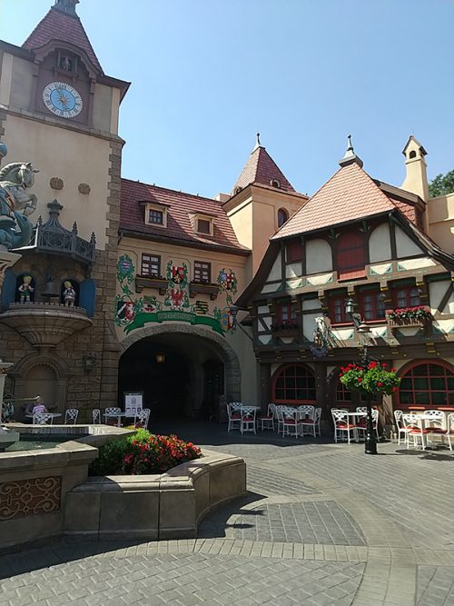 ドイツ館はとっても可愛い街並みが再現されていました。白雪姫とグリーティングも。ガラスの工芸品なども素敵で、見ているだけで楽しい場所でした。