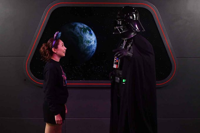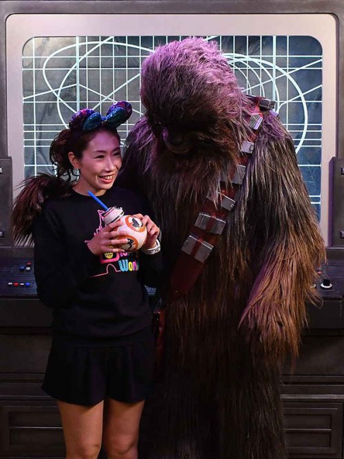 『スターウォーズ』のチューバッカ、ダース・ベイダー、BB-8の3キャラクターとグリーティング。朝いちだったのですんなり会うことができました。ダース・ベイダーは最初怖くて話せなかったので、2回連続でグリーティングしてみました!