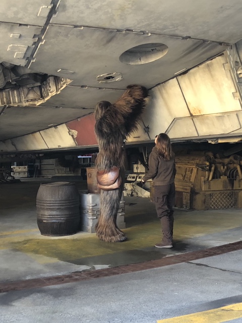 朝からまずはディズニー・ハリウッド・スタジオへ!しかし、朝寝坊してしまい、スター・ウォーズ:ライズ・オブ・ザ・レジスタンスの整理券は取れずこの日は泣く泣く断念(完全当日券のみ)。とりあえず、他のスター・ウォーズ系アトラクションを制覇しました。ギャラクシーズ・エッジのスター・ウォーズのエリアへ!「ミレニアム・ファルコン:スマグラーズ・ラン」は150分待ちでしたが、乗れて満足です!楽しかったです!この後、チューバッカに会いに行ったら、サプライズでレイちゃんも来てくれました(嬉)!ダースベイダーはものすごい迫力で、前の少年がギャン泣きでした(笑)、私も泣きそうになりました(笑)。でも会えて嬉しかったです!
