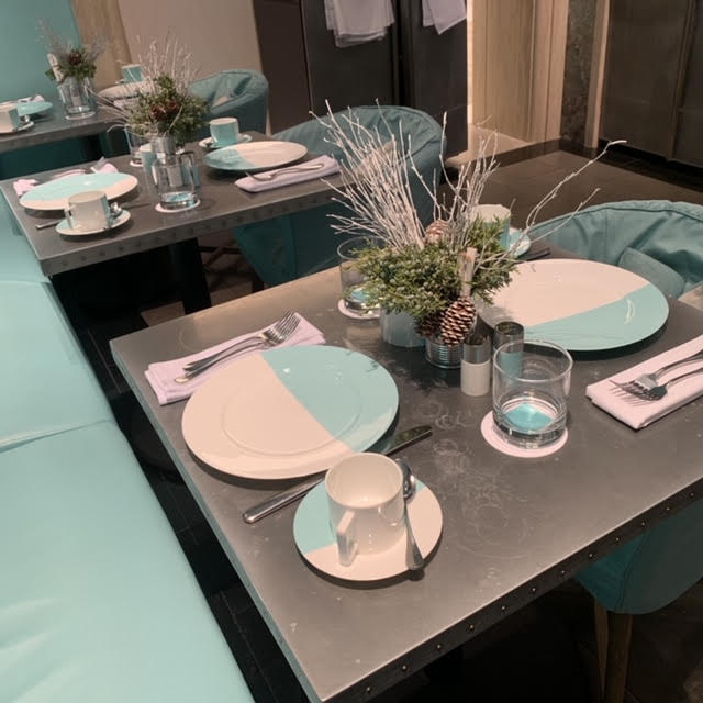 14時半すぎに空港に到着し、16時45分にTiffanyのThe Blue Box Cafeを予約していたので、急いでタクシーで向かいました。内装も食器もティファニーカラーでとても可愛らしく、テンションアップ。なかなか予約が取りづらいので、予約ができて幸運でした。