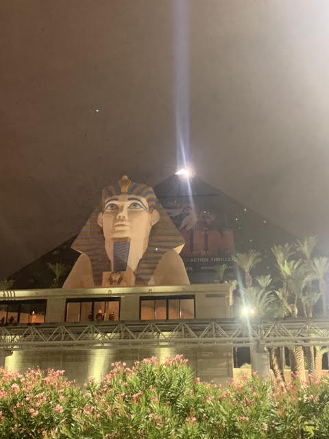 早朝にニューヨークを出発し、ラスベガスに11時頃到着予定が、搭乗後の便変更により3時間以上の遅延。14時過ぎにラスベガスに到着し、「ルクソールラスベガス」ホテルに移動し、チェックイン。ルクソールラスベガスはガイドブックにも載っているほど有名なので、滞在できて嬉しかったです。有名どころのホテルだとタクシーに乗る際にも伝えやすいですし、マップでも簡単に検索でき、初めての土地でも迷わず安心する事ができました。