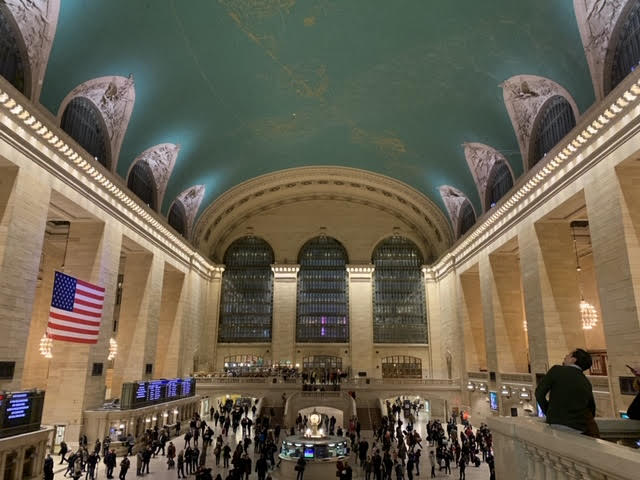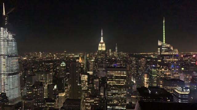 次に、映画『花より男子』の舞台にもなったフラットアイアンビルディングの外観を見に行ったのですが、あいにく工事中でしたのちらっと見ただけにして、グランドセントラル駅へ。友人がドラマ『ゴシップガール』が好きで、大喜びでした。ディナーは「ファイブナプキンバーガー」で分厚いパテが入ったバーガーを楽しんだ後、ロックフェラーセンターのtop of the rockで夜景を楽しみました。