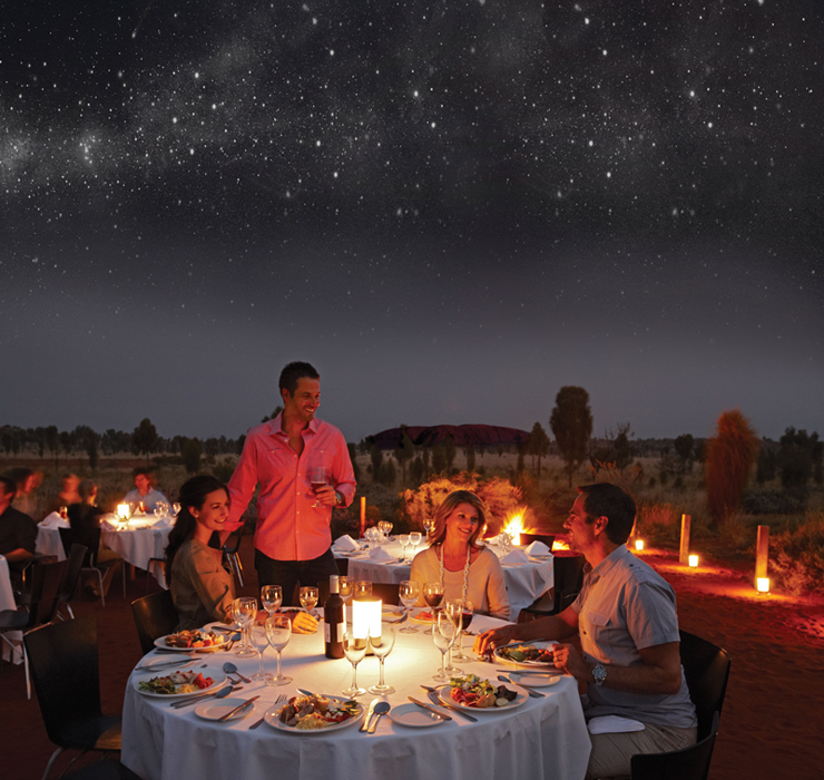 エアーズロックのサンセット観賞、そしてディナータイムにはアウトバックの満点の星空の下で、オーストラリアの料理、ワインを堪能!仲間達とロマンティックなお時間をお過ごしください!