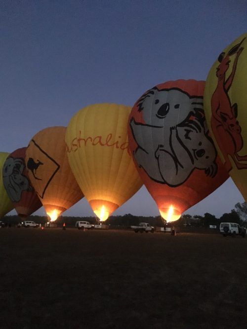 気球には体重が重たそうな人から順に乗るんですが、16名乗れるほど気球のかごはとても大きかったです。男性スタッフ3~4人で風の方向に気球を押し上げてくれて、ガスバーナーを点火すると徐々に気球は浮上していきます。ちょうど朝日が上がるタイミングで、朝雲はきれいに赤く染まっていました。見おろすと気球に驚いた野ウサギ、カンガルー、バッファローが一斉に逃げていく姿が見えました。見たこともないような幻想的な景色で、一生忘れないでしょう。