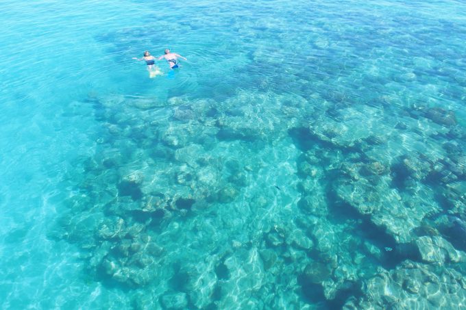 最初はシーウォーカーを初体験!海の中で息ができる体験に脳が追いつかず若干パニックに(笑)。でも海の中は綺麗なお魚をたくさん見ることができました。そのままウェットスーツが借りられたので、日焼けを気にせずシュノーケリングを楽しみました。シュノーケリングも最初は怖くて何度も水に顔をつけたり離したり…徐々に慣れたら楽しくなり、魚を追いかけて気が付いたら一人で遠くの方まで泳いでいました!