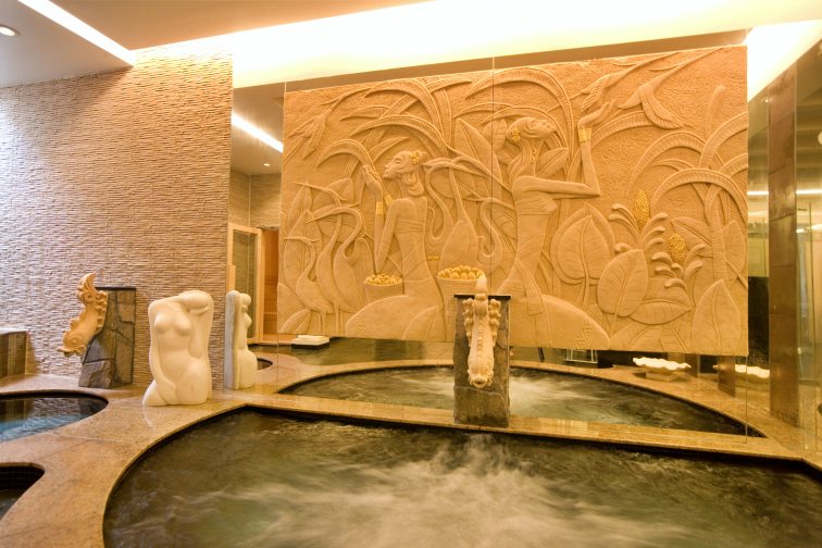 バイブラバス、冷水浴槽、ドライサウナ、入浴時に休憩できるテラススペースなどもあり、ゆっくりと入浴を楽しめます。スパスイート、プレミアグランスイート、クラブフロア、EXES ロイヤルプールスイートにご宿泊のお客様は、滞在中無料でご利用いただけます。