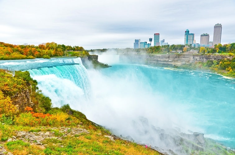 メープル街道の最南端に位置するナイアガラの滝。世界三大瀑布の1つであるナイアガラの滝は1年を通して人気のある観光スポットですが、紅葉とナイアガラのコラボレーションも一見の価値あり!ローレンシャン高原のダイナミックで迫力のある紅葉とは異なり、ナイアガラでは穏やかな紅葉をご覧いただきます。メープル街道の中で1番南に位置しているため、紅葉の見ごろも他の都市に比べると遅く、10月中旬がピークとされています。ぜひ、壮大なナイアガラの滝としっとりとした紅葉の風景を楽しんでください。