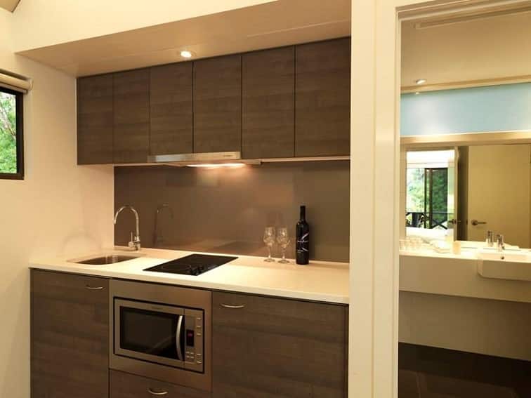 そして、各バンガローには電子レンジ、ミニ冷蔵庫、食器洗い機、コンロを備えた簡易キッチンが完備されています。例えば、現地のレストランでの食事に飽きてしまった場合に、ご自身で購入された食材を使ってお好みの料理を調理することもできるので、長期滞在予定の方にもおすすめです!