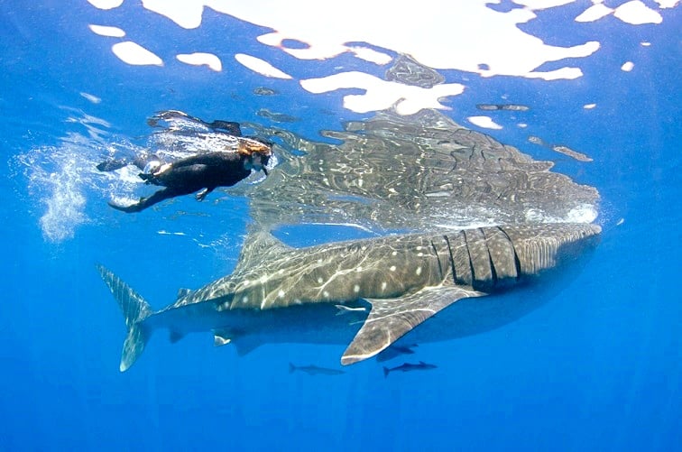 毎年5月下旬~9月にかけて、ジンベエザメはカンクン沿岸にやってきます。すべての魚類の中で最も大きく、最大全長20mにもなるジンベエザメですが、プランクトンを主食とした温厚な魚。人に危害を加えることは、まずありません。