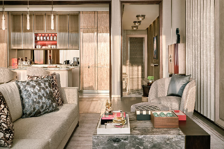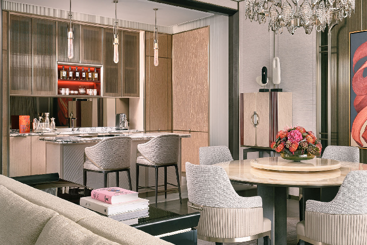 約160平米の1ベッドルームの客室です。夜の時間を盛り上げる大理石のソーシャルバーで、専属のバトラーがお好きなカクテルをお作りします。