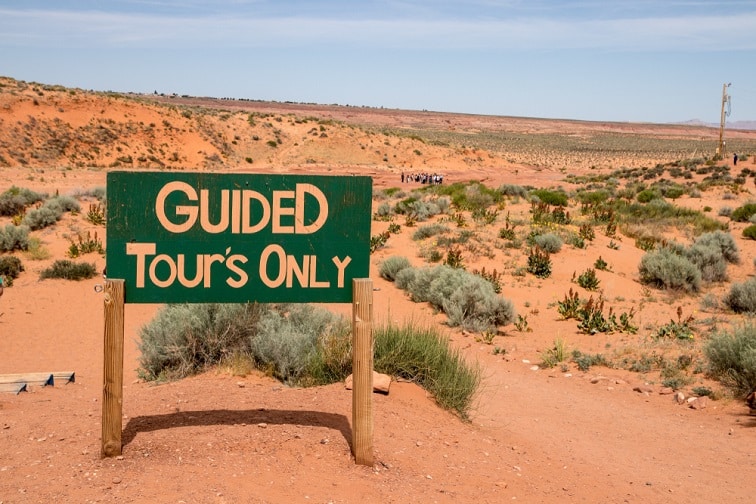 アンテロープ・キャニオンは先住民ナバホ族の居留地にあるため、彼らのガイド付きツアーに参加する必要があります。必ず各渓谷の入り口で受付をして、ガイド付きツアーへの申し込みをしなくてはなりません。
