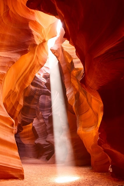 キャニオンの頂上(約36m)の開口部から陽光が狭い渓谷内に差し込む幻想的な「ザ・ビーム」が見られることで観光客から人気があります。ロウアーキャニオンよりも全体的に平坦な場所にあるため、小さなお子様やご高齢の方でもツアーに参加していただきやすいスポット。