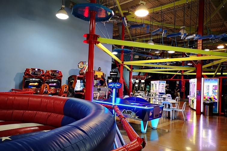 屋内には、ゲーム機(アーケードゲーム)や空中アスレチック(ハイロープチャレンジ)などが楽しめるスペース「Thrill It Fun Center(スリル イット ファンセンター)」もあります。この施設では、レーザータグやアーケードゲーム、ロッククライミング、インタラクティブなプレイ構造などさまざまなアトラクションがあり、覗いてみるだけでも楽しめそう。